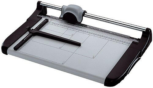 A KW Trio vágó még több lap vagy lap vágására alkalmas. Továbbegy csúszóütközőt helyeznek el a munkalapon, párhuzamosan az egyenesselvágott. Max. vágási hossz 360 mm. , max. vágási vastagság 1,5 mm. Ergonomikusvágófej. Tartalék vágófej kapható. Vágott hossz: 36 cm. Veremnyomás: automatikus. Munkalap méretei: 31,5 × 54,6 cm. Súly: 3,5 kg.